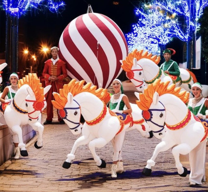 Une parade féérique et musicale où lutins, chevaux lumineux, montgolfière enchantée et Mère Noël entraînent petits et grands dans la magie d’un manège vivant, déambulant au cœur de la fête.